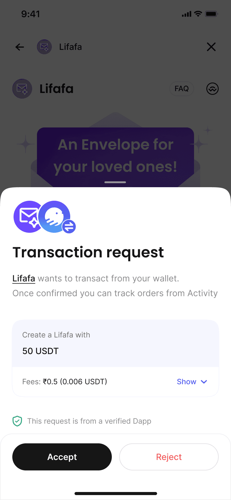 Whether a receiving user has Okto installed or not. They can receive a Lifafa as long as they connect their wallet.