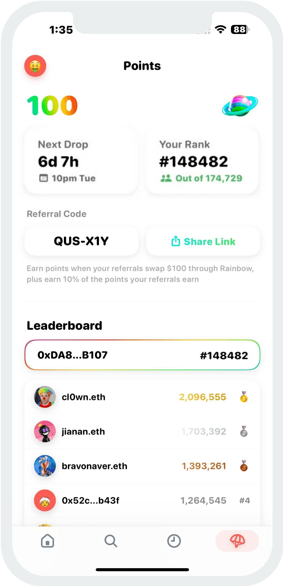 After seeing the welcome animation we wanted to prevent users from just farming points with their network. To prevent this we ensured they had to unlock their points by making at least one Web3 transaction.