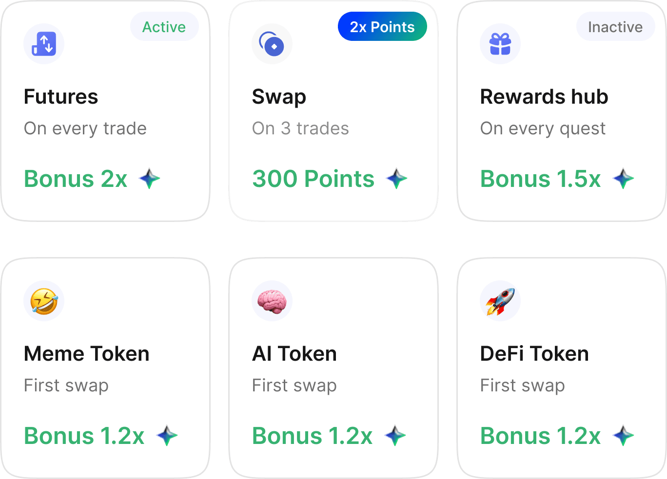 Upon doing some actions during certain intervals a user could achieve multipliers to the Points they earn. This ensured users would always come to check what boosters they could earn that day.